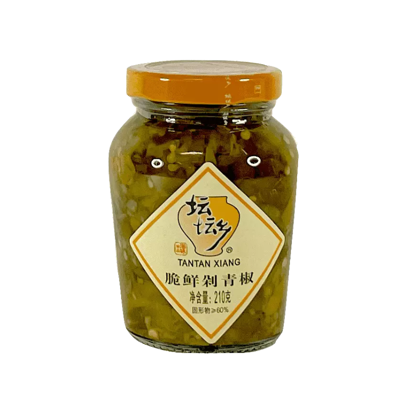Tantan Xiang chopped green chilies add a spicy and crunchy touch to your dishes. Finely chopped and pickled in vinegar, they offer a perfect balance of heat and acidity, while maintaining their crispy texture.